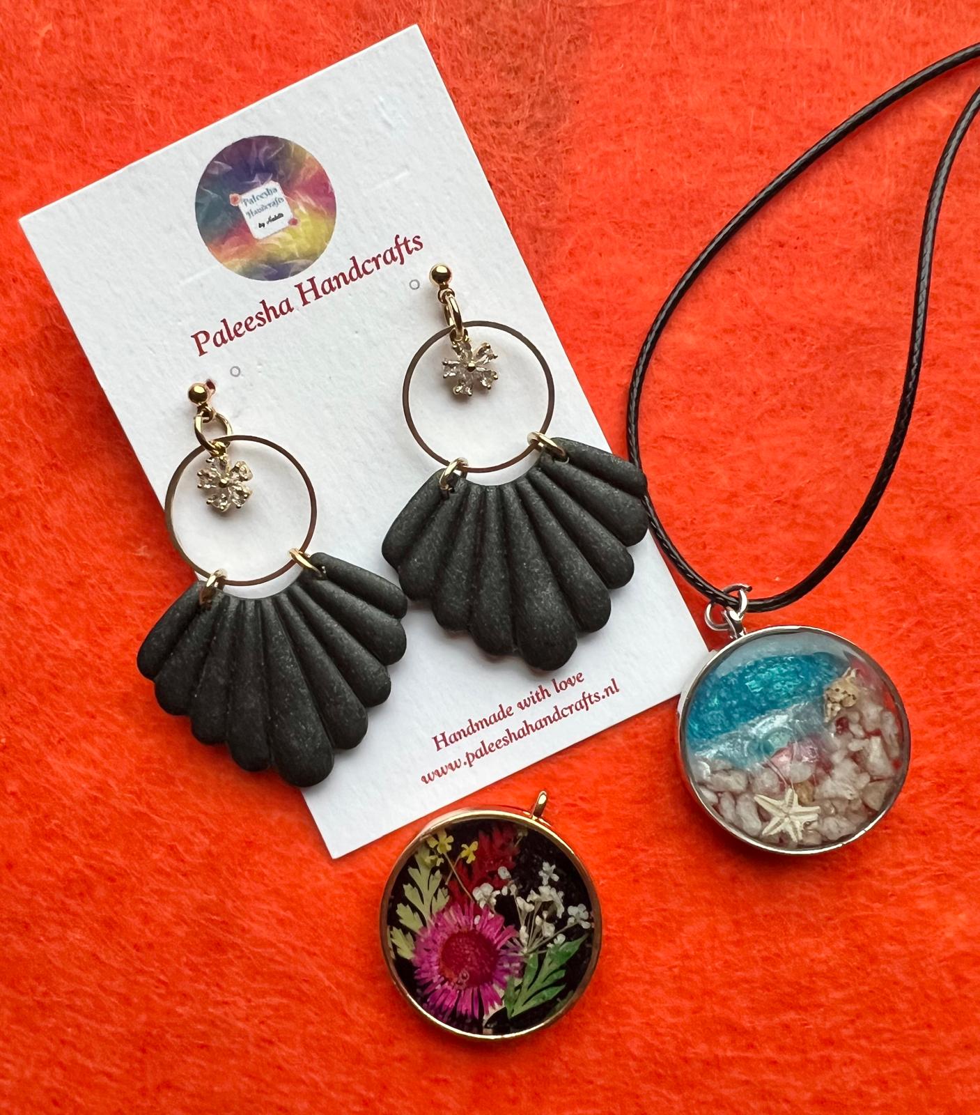 Aan het einde van de workshop kun je jouw zelfgemaakte oorbellen van polymeerklei en epoxy hanger meenemen.