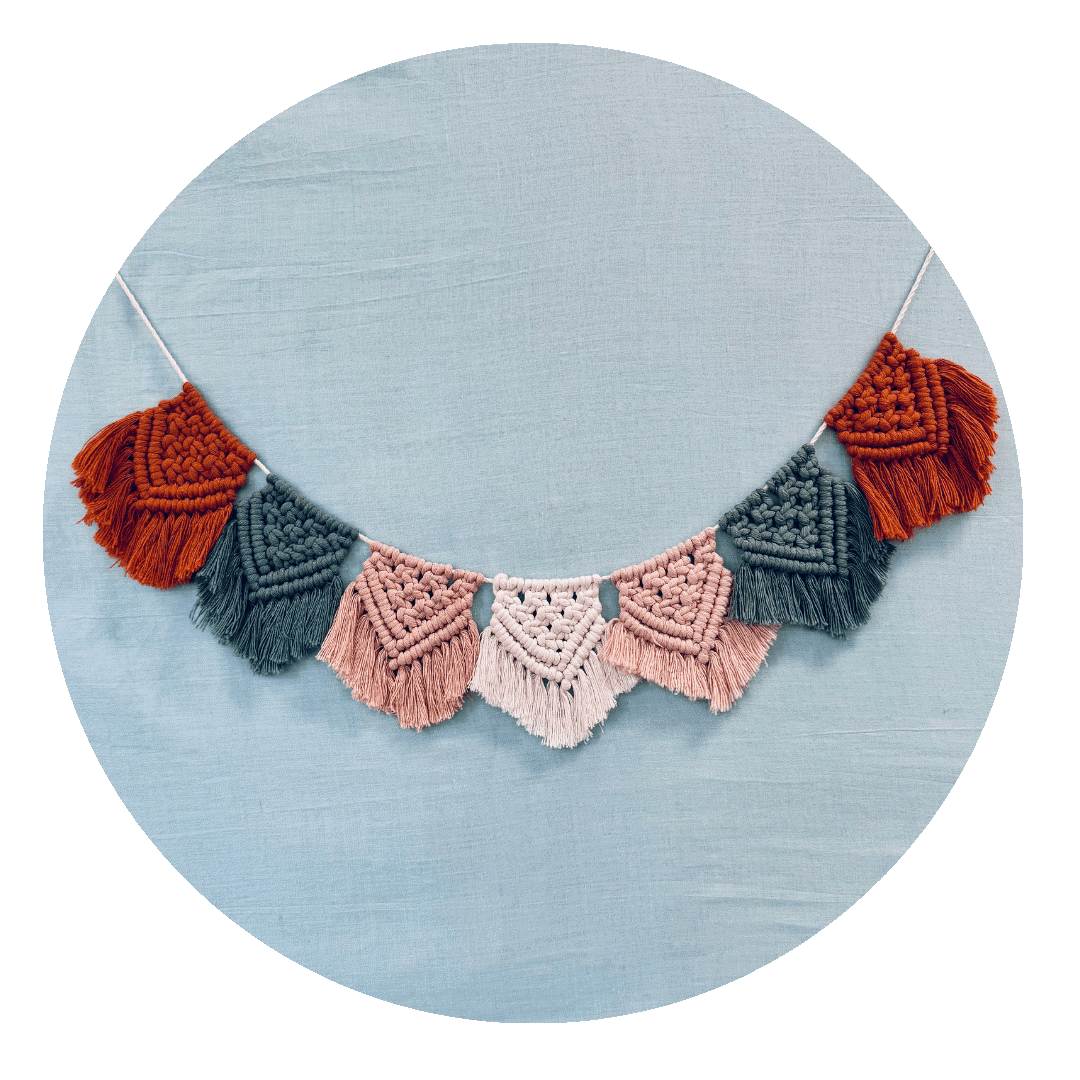 Macramé – Vrolijke vlaggenlijn, leuk voor op de camping of in de babykamer