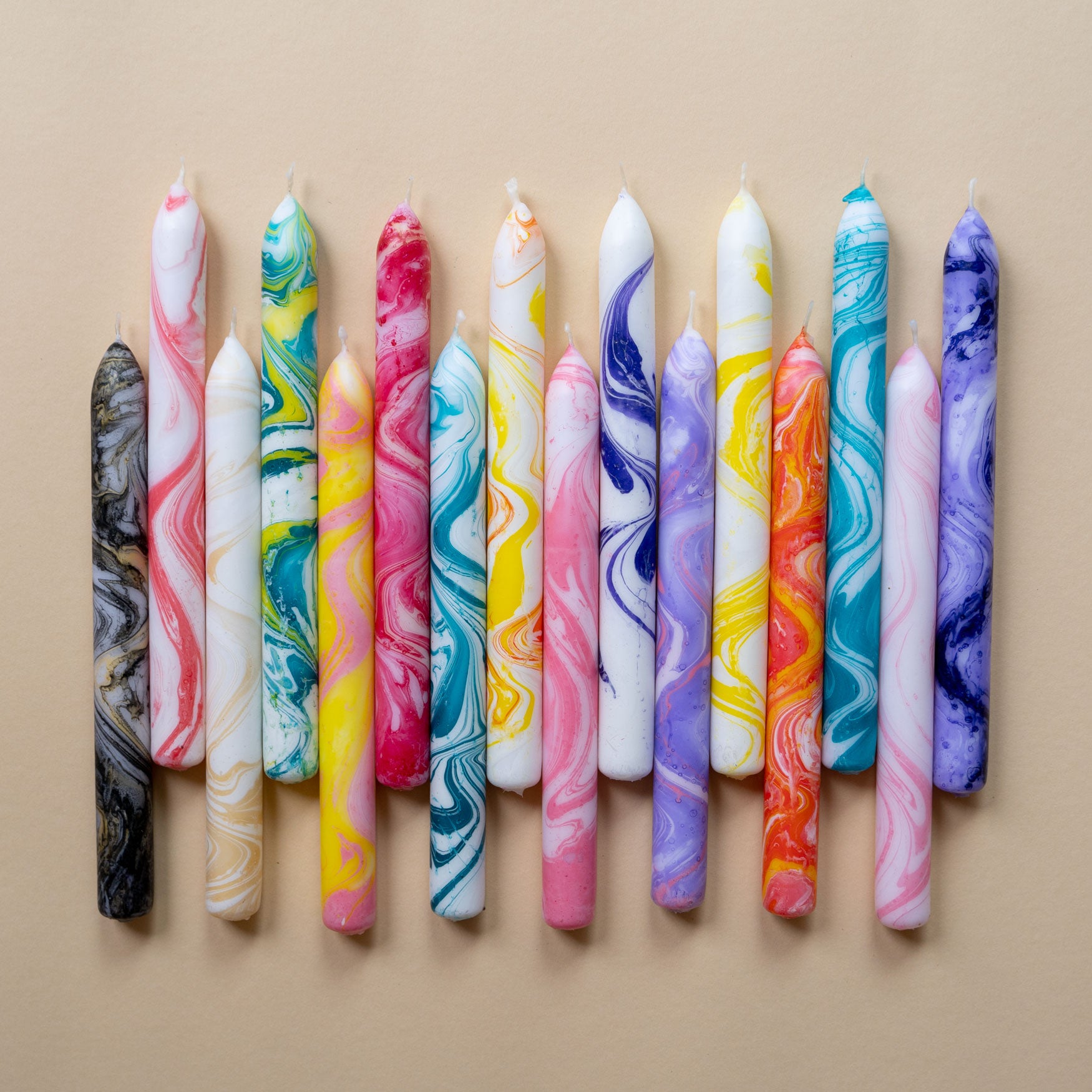 Tijdens de workshop, die slechts 5 minuten duurt, leer je hoe je een witte dinerkaars omtovert tot een kleurrijk meesterwerk. Na een korte uitleg kies je jouw favoriete kleuren, creëer je een patroon en dompel je je unieke kaars.